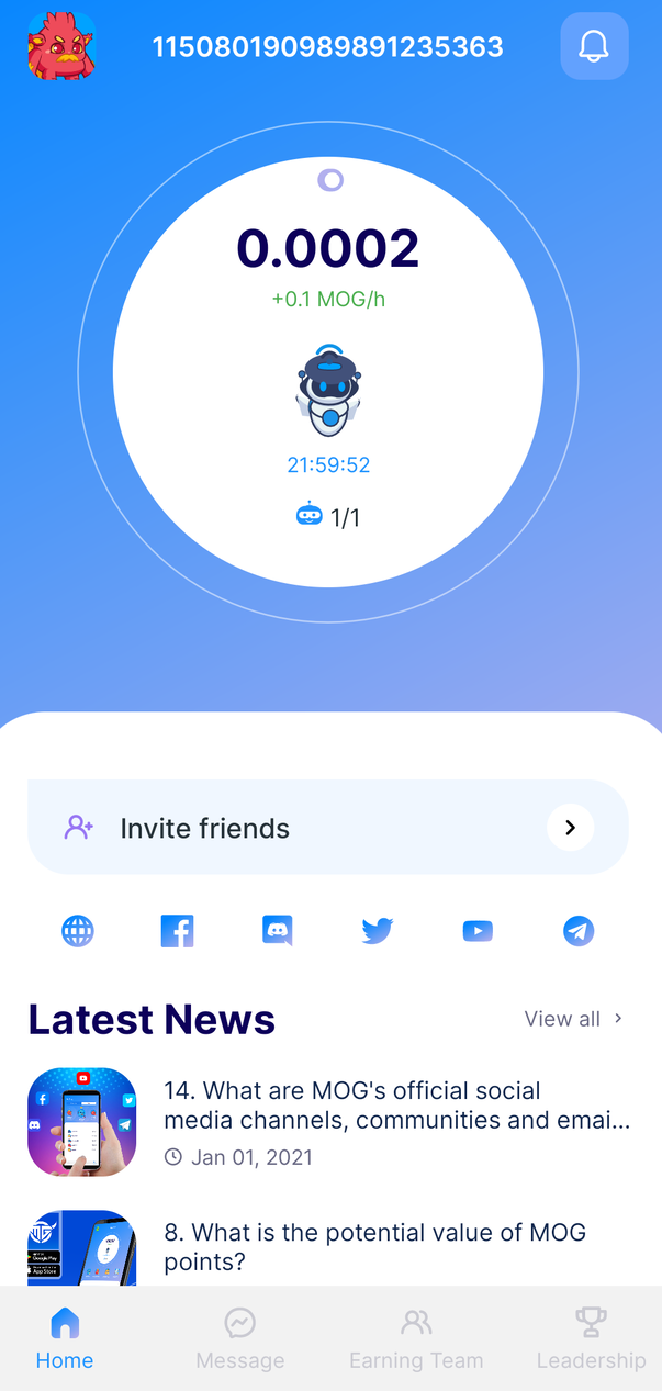 이상 MOG 코인을 채굴할 수 있는 MOG NETWORK 어플에 대해 알아봤습니다. 추후에 P2E 게임에 사용될 수도 있으니 미리미리 채굴해놓으시길 바랍니다~!