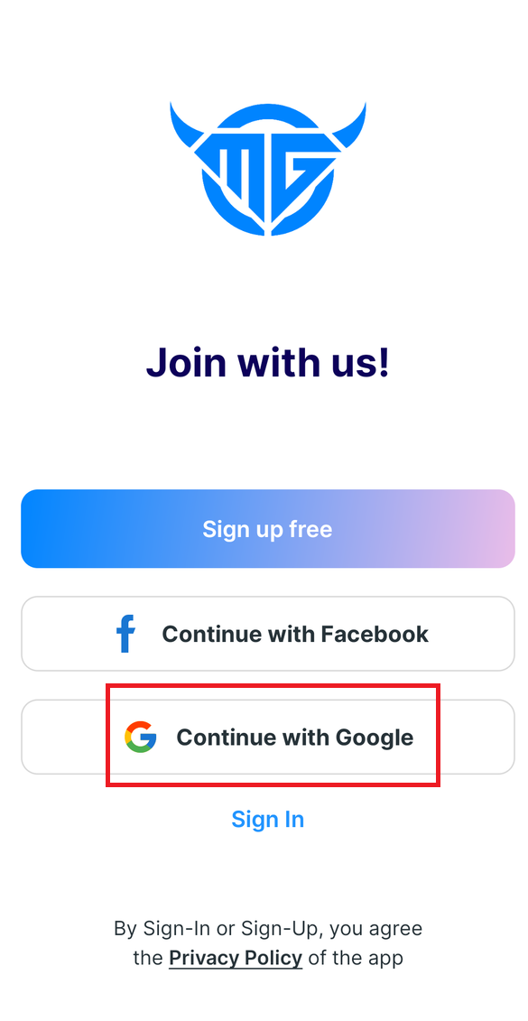 MON NETWORK 어플을 실행시키시면 위와 같은 화면이 나옵니다. 여기서 Sign free 나 페이스북, 구글 아이디 중에 원하시는 것으로 회원가입을 하실 수 있습니다. 저는 구글아이디로 가입하기 위해서 Continue with Google 을 눌렀습니다.