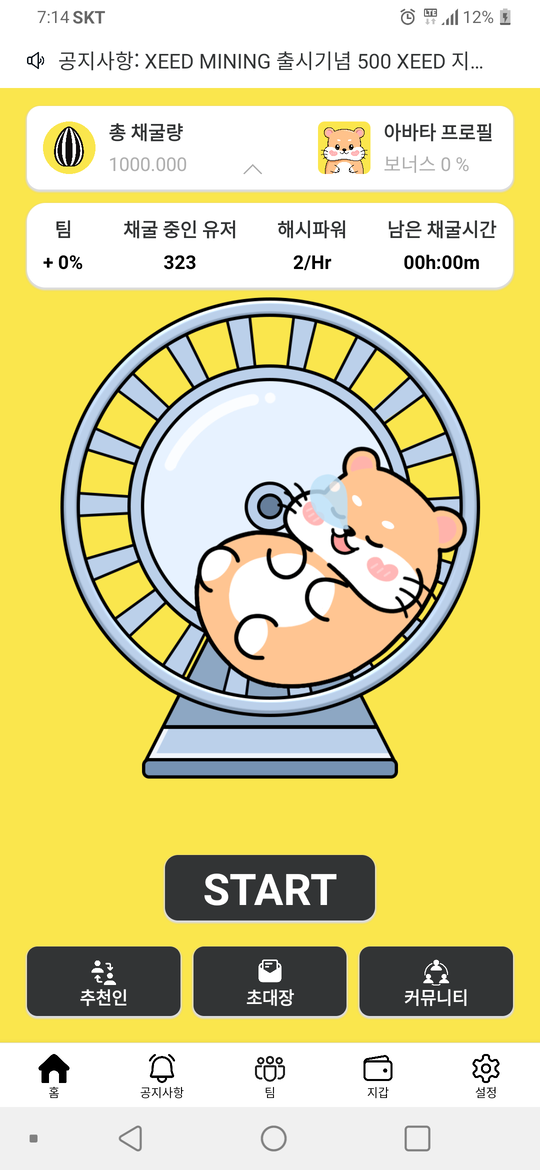 이상 햄스터즈 코인인 XEED MINING 채굴 방법에 대해 알려드렸습니다. 극초기 인 만큼 서둘러서 시작하시길 바랍니다~