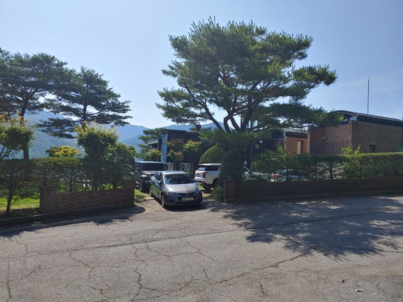 가평 보르도 펜션 입구 모습입니다. 저희는 차가 많아서 안에 4대 주차하고 외부 갓길에도 2대 주차를 하였습니다.