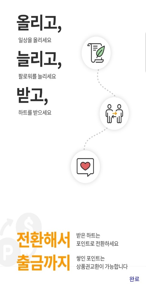 다시 홈으로 돌아오셔서 연필 모양 아이콘을 누르면 글쓰기를 작성하실 수 있습니다. 글쓰기는 하루에 10번까지 랜덤 포인트를 얻으실 수있고 다른분들이 하트를 주기 때문에 품앗이?형식으로 하트를 보내주시면 됩니다.