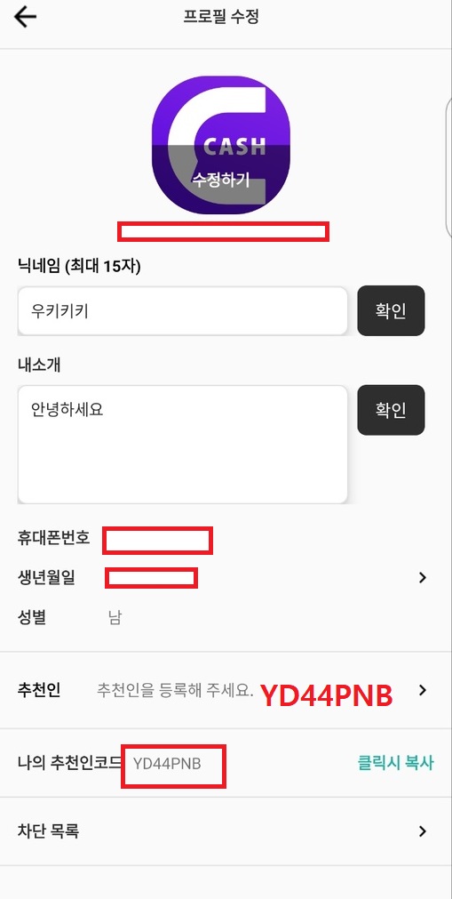 프로필 수정에 보면 추천인을 등록해 주세요 라는 칸이 있는데 여기를 누르시고 추천인 YD44PNB 를 입력하시고 캐시를 얻고 시작하시길 바랍니다.