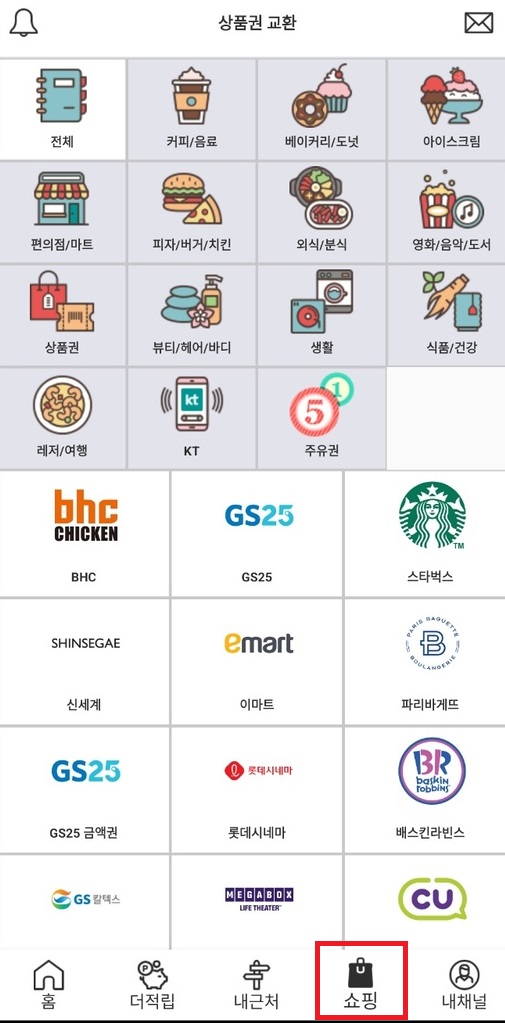 모았던 포인트는 쇼핑 탭에서 원하시는 상품으로 교환이 가능합니다. 품목도 많아서 포인트를 모아서 사용할 수 있는 선택의 폭이 많습니다~ 필요한 상품을 사용하셔도 되고 아니면 기프트콘 판매 어플에서 판매를 하셔서 현금화 하셔도 됩니다~