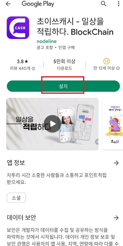 먼저 구글플레이스토어에서 초이쓰캐시를 검색하셔서 다운로드 받습니다.