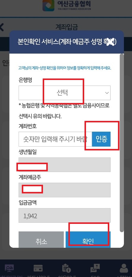 계좌번호와 은행, 생년월일, 계좌예금주 등 확인해보신 후 확인을 눌러줍니다.