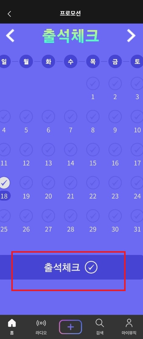 글을 아래로 조금 내려보시면 출석 할 수 있는 화면이 있는데 여기서 출석체크를 눌러줍니다.