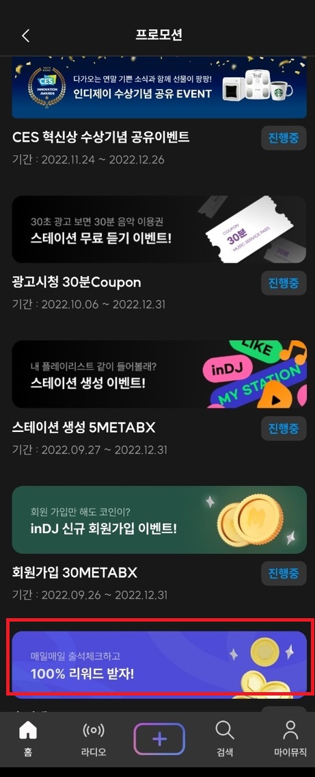 오늘은 노래 플레이리스트만 만들어도 코인을 얻을 수 있는 inDJ 에 대해 알아보겠습니다. 회원가입만 해도 30코인을 얻으실 수 있고 추천코드를 입력하시면 10코인을 더 받으실 수 있으니 꼭 입력하시길 바랍니다~ 노래 듣기를 좋아하시는 분들이라면 플레이리스트를 만들고 들으시면서 코인도 얻으실 수 있기 때문에 좋습니다!