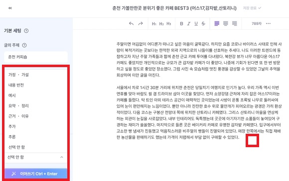 이외에도 여러가지 기능들이 있습니다. 여러가지 광고, 홍보, 마케팅 등 카피라이팅 작성을 위해서 사용할 메뉴들이 많으니 본인이 필요하신 것들을 한번 사용해보시길 바랍니다.