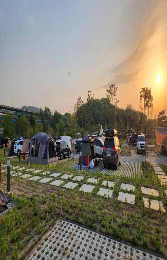 저희가 예약한 소형 사이트입니다. 주차구역과 캠핑구역이 있습니다~