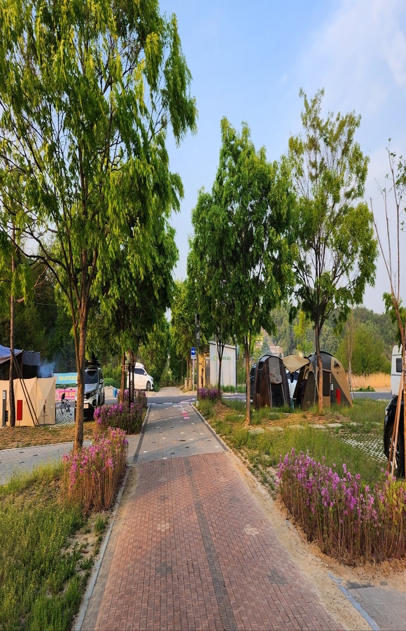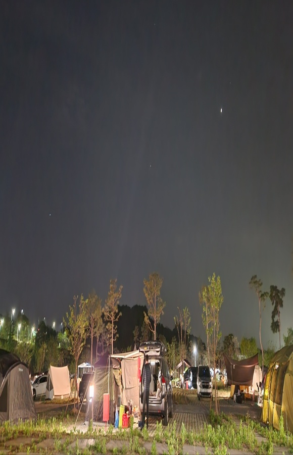 다리쪽에도 가로등이 켜져있는 모습입니다~ 밤에는 매너타임이 있기 때문에 저녁되면 밖에서 놀다가 23시 정도되면 다들 정리하고 텐트 안으로 들어가서 캠핑을 즐기는 모습들이 보입니다.