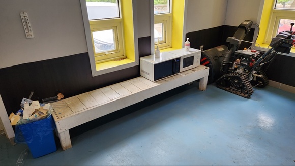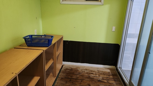 개수대로 들어가는 반대편에는 전자렌지도 마련되어 있습니다~ 인스턴트 음식 준비하신 분들은 이용하시면 되겠습니다.