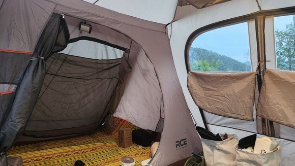 제로스트 R1 텐트는 이너텐트와 거실 공간이 있어서 좋습니다~ 4~5인용이라 가족 단위로 사용하셔도 될거같습니다.