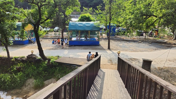 저희는 한바퀴 돌고 와서 자리가 없어서 결국 아래쪽 가족 사이트 쪽에 자리를 잡았습니다. 바로 옆에 방방도 있고 작은 계곡물도 있어서 가족들끼리 오시면 좋은 곳인거 같습니다~
