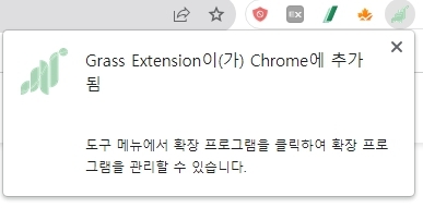 확장 프로그램에 추가가 되면 오른쪽 상단에 Grass Extension 아이콘이 생기는데 나중에 여기로 로그인을 하실 수 있습니다.