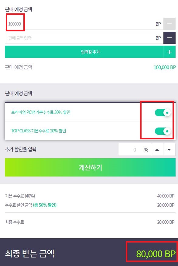 피시방에서 거래를 하게되면 기본 30%에 Top Class 수수료 할인까지 받으면