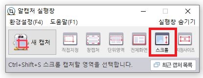 화면 스크롤 캡쳐하는 방법은 알캡처 실행창에서 스크롤을 눌러줍니다.