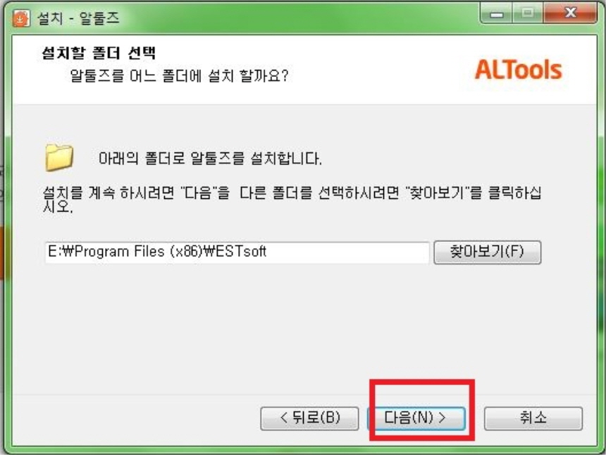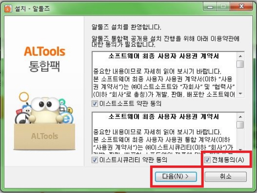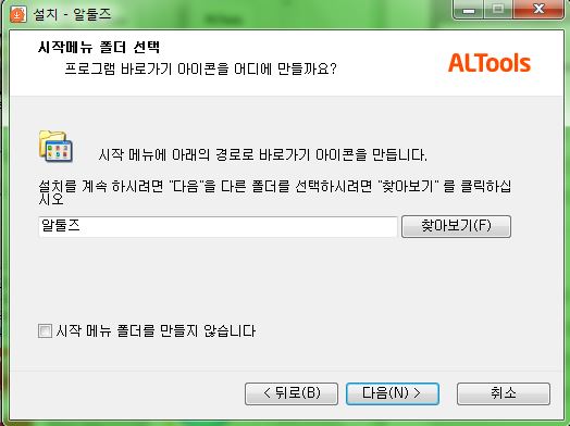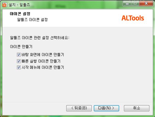 다음 단계는 알툴즈 관련 아이콘을 만드는 것 인데 원래 체크되어있는데로 두고 다음을 눌러줍니다. 아이콘 바로가기를 만들기 싫은 곳은 체크 해제하고 다음을 누르면 됩니다.
