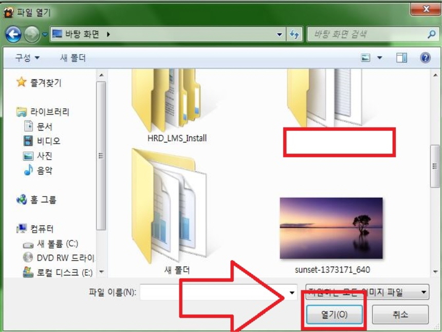사진 추가를 누르면 파일 열기 화면이 나오면 여기서 사진을 선택하고 열기를 눌러줍니다.