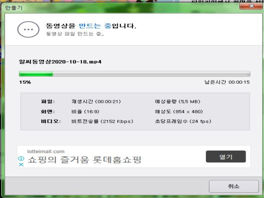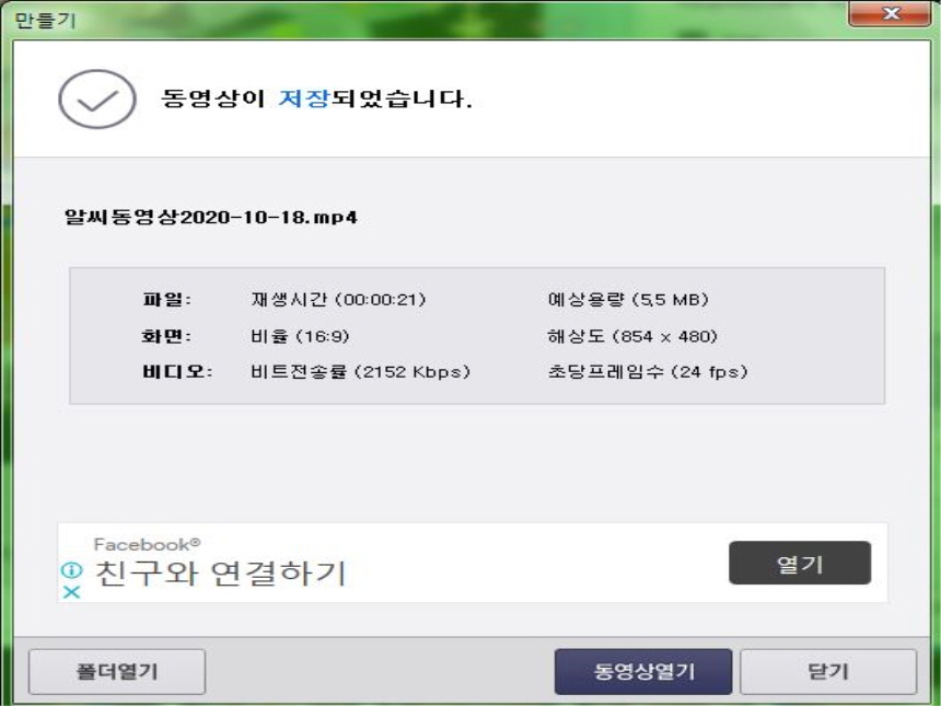 동영상 저장이 완료되면 동영상 열기를 통해 만든 동영상을 확인해주시면 됩니다.