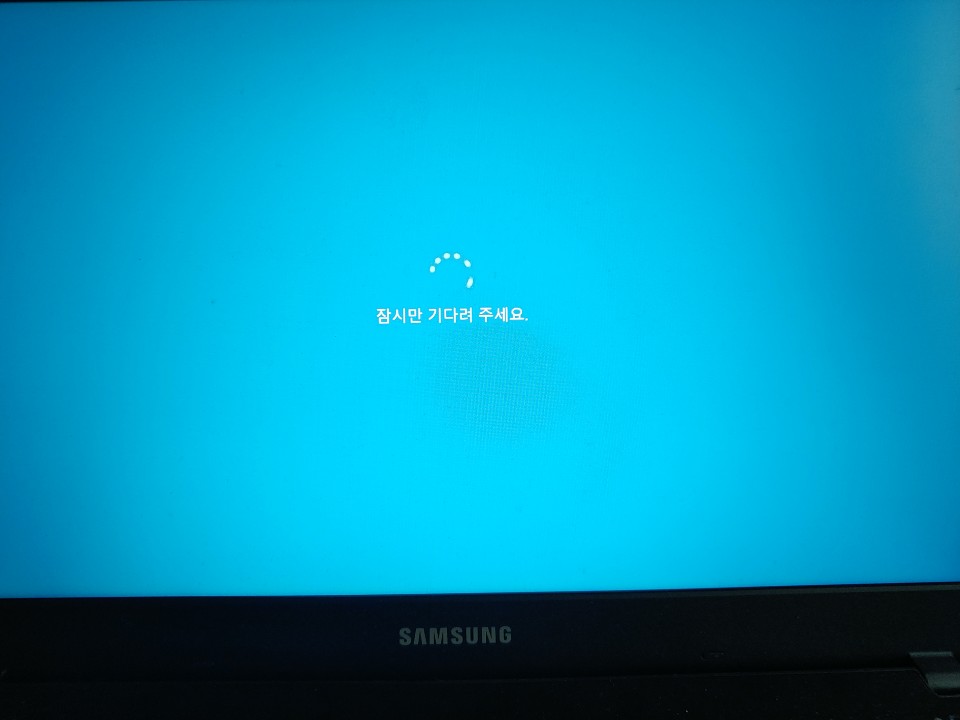 이제 설정이 완료 되었고 준비 중입니다. pc를 끄지 말라는 메세지가 나오고 시간이 지나면 노트북이 켜집니다.
