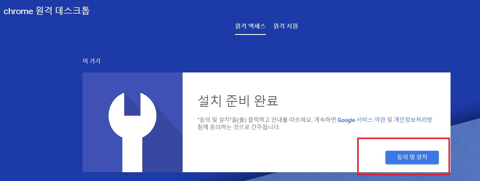 설치 파일이 자동으로 다운로드 되는데 동의 및 설치 버튼을 눌러줍니다.