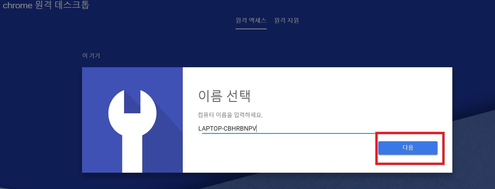 크롬 원격 데스크톱에 접속하신 후 하단에 시작하기를 눌러줍니다.