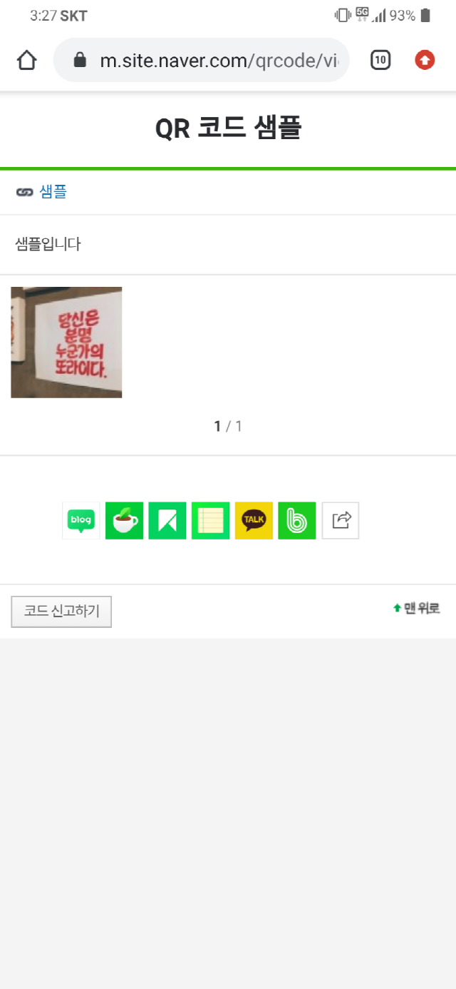 QR코드를 스캔하면 위와 같은 화면이 나옵니다~ 상품 홍보하시거나 정보를 알려주실 때 좋죠~~