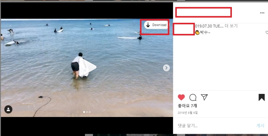 동영상을 다운로드 받아보겠습니다 ㅎㅎ 동영상도 똑같이 오른쪽 상단에 다운로드 버튼이 보입니다~