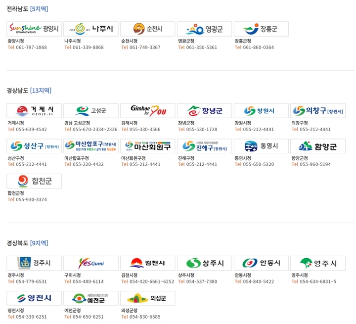 전라남도 5곳, 경상남도 13곳, 경상북도 9곳에서 가입이 가능합니다.