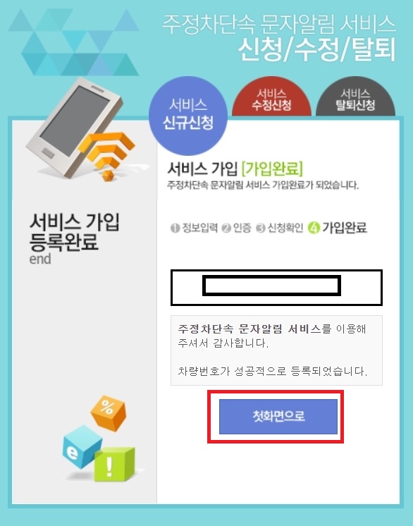 자신의 차량번호가 위에 나와있고 가입이 완료되었다는 문자를 받으실 수 있습니다.