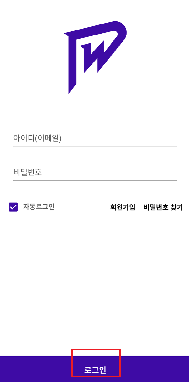 어플을 실행하시면 로그인 화면이 나오는데 아직 아이디가 없기 때문에 회원가입을 누르셔서 회원가입을 합니다.