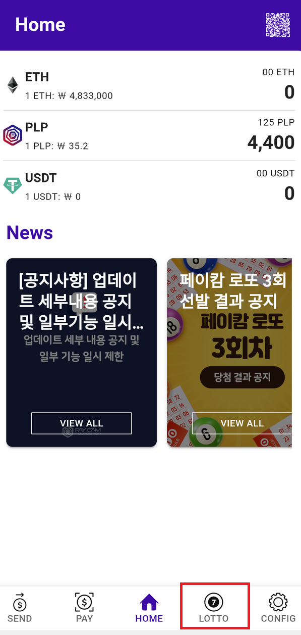 다음으로 페이캄 코인을 얻는 방법인 출석체크에 대해 알아보겠습니다. 로또 옆에 아이콘인 CONFIG 를 눌러주신 후 출석 체크를 눌러줍니다.